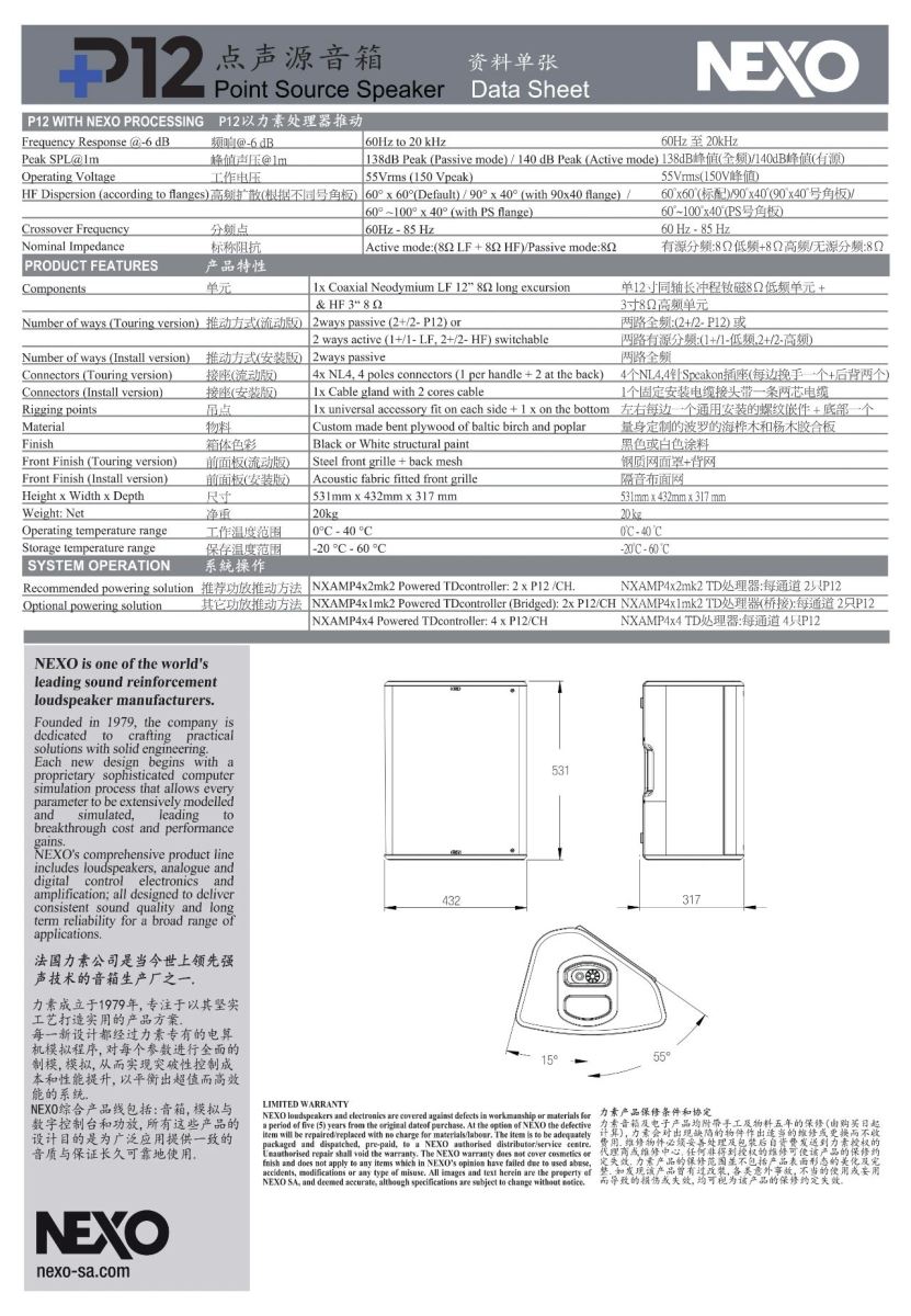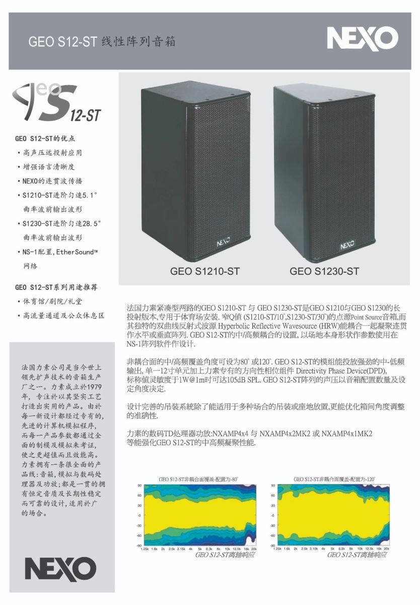 音箱系統(tǒng)由5組NEXO GEO S12-ST線陣列音箱與9組NEXO GEO S12組成,采用NEXO仿真模擬軟件NS-1計(jì)算來決定GEO S12和GEO S12-ST音箱的數(shù)量,保證每組線陣列的投射能力。通過垂直和水平控制,進(jìn)一步加強(qiáng)GEO S12與GEO S12-ST雙曲線反射波源。而比賽場(chǎng)地則以8只NEXO 最新款點(diǎn)聲源音箱P12做垂直指向。分別由NEXO專用功放NXAMP4x4與NXAMP4x1mk2提供電力驅(qū)動(dòng),并通過Dante網(wǎng)絡(luò)進(jìn)行控制,這一新系統(tǒng)解決了首都體育館所有音頻問題。14組數(shù)量不一的音箱為所有座位提供了一致的聲壓覆蓋,并在不違反體育賽事中嚴(yán)格要求的噪音規(guī)定下,聲壓級(jí)有了明顯的提升。