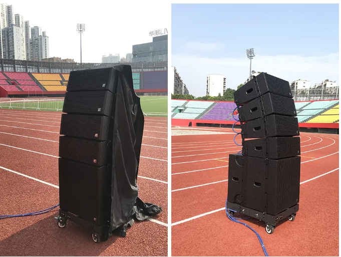 其中,HI- ZONE體育場(chǎng)是集各類賽事、文藝演出、健身娛樂(lè)為一體的室外體育場(chǎng),場(chǎng)內(nèi)建有400米標(biāo)準(zhǔn)田徑場(chǎng),四周建有看臺(tái)(22個(gè)看區(qū))和主席臺(tái),設(shè)有觀眾座席35000座。HI- ZONE體育場(chǎng)選用了EV"RF"—VK208線陣列系統(tǒng)為主擴(kuò)聲,VK18B超低頻揚(yáng)聲器、以及周邊設(shè)備等產(chǎn)品。