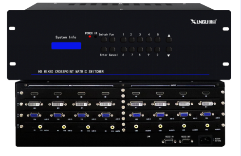 矩陣切換器就是將一路或多路視音頻信號分別傳輸給一個或者多個顯示設(shè)備,如兩臺電腦主機要共用一個顯示器,矩陣切換器可以將兩臺電腦主機上的內(nèi)容任意到同一個或多個顯示器上,可切換多路信號輸出的設(shè)備。