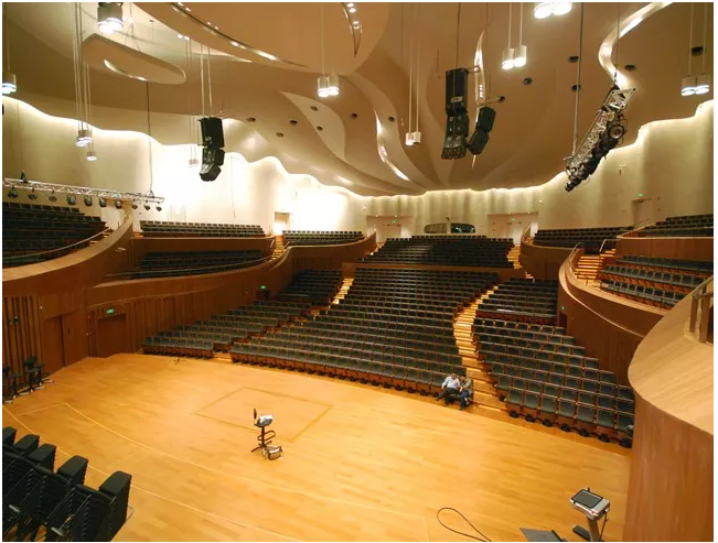 例如,江蘇大劇院音樂廳就主要采用的是線陣列擴(kuò)聲器,在場(chǎng)地較小、輔助擴(kuò)聲器較少的情況下也能覆蓋所有觀眾席位。