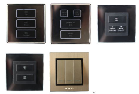 2)特別設計的精美的水晶觸控盒(標準86盒方式),甚至可以讓您不需要任何控制屏,您可以像操作普通家用開關一樣的操作它們
