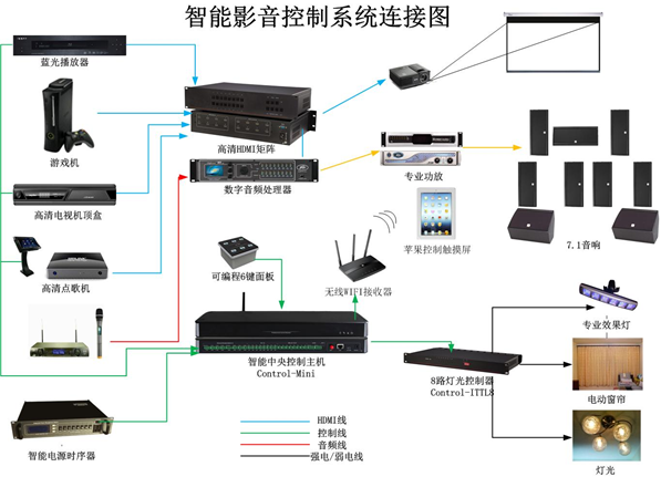 通過它們可以實現對您的環境系統的聲光電進行統一的管理,其中包括:
