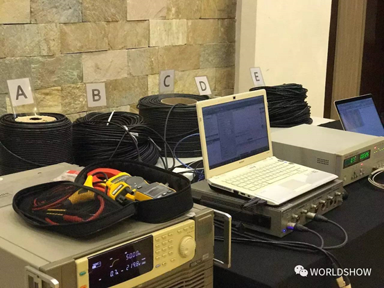 在小型演出中,信號線的長度通常不會超過100米,在這個長度范圍內(nèi),專業(yè)級的設(shè)備和線材的高頻衰減一般不太明顯。而在大型系統(tǒng)中,如在體育場做分散的擴(kuò)聲系統(tǒng),信號線的總長度可能達(dá)到400米甚至更長,這時高頻的衰減可能非常明顯。為了模擬長距離模擬信號傳輸?shù)那闆r,每款被測線材的長度均為400米。為了盡可能減小接插件質(zhì)量對測試的影響,全部線材接頭采用Neutrik 系列卡儂插頭并進(jìn)行統(tǒng)一高質(zhì)量的焊接。