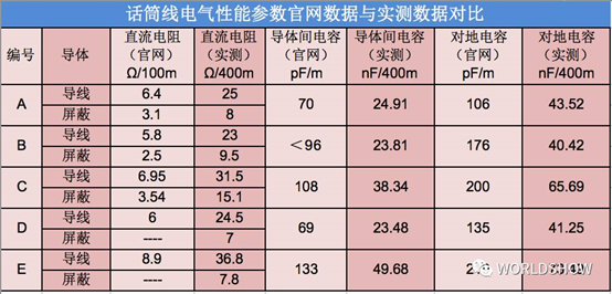 表2:五款線材的電氣性能參數(shù)官網(wǎng)與實測數(shù)據(jù)對比,注意單位的區(qū)別。
