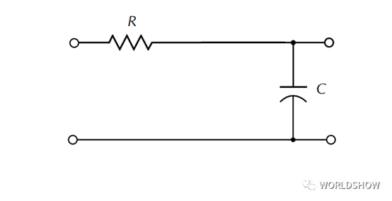 模型驗證:在AP515測試儀中,將輸出端阻抗設(shè)置為為100Ω,輸入端阻抗設(shè)置為200 kΩ,用一條長度為0.5m的信號線連接輸入和輸出。在卡儂公頭的2腳和3腳之間并聯(lián)入一個33nF的電容,這個電容量接近于常見話筒線在距離達(dá)到400米后的線間電容的中間值,用于模擬長距離傳輸時的可能存在的線間電容。在如此短的線材中,我們可以忽略線材本身的電阻和電感。傳輸電路的模型可簡化為: