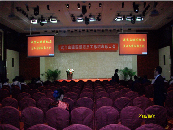 酒店宴會廳集合了會議、晚會表演為一體的多功能舞臺,燈光要求既能滿足會議攝像要求,又要能滿足舞臺表演要求。需要基礎光和舞臺效果燈具的結合使用,針對主席臺面光、頂光、側光、耳光和逆光的布置,可選用高顯色指數的LED影視平板柔光燈和LED影視聚光燈或LED數字聚光燈。
