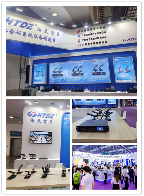 恩平市海天電子科技有限公司展會中展出了如意系列演講話筒、數字紅外無線會議系統、分區式數字會議系統、全屏觸控數字會議系統、優先無線共用會議系統等。
