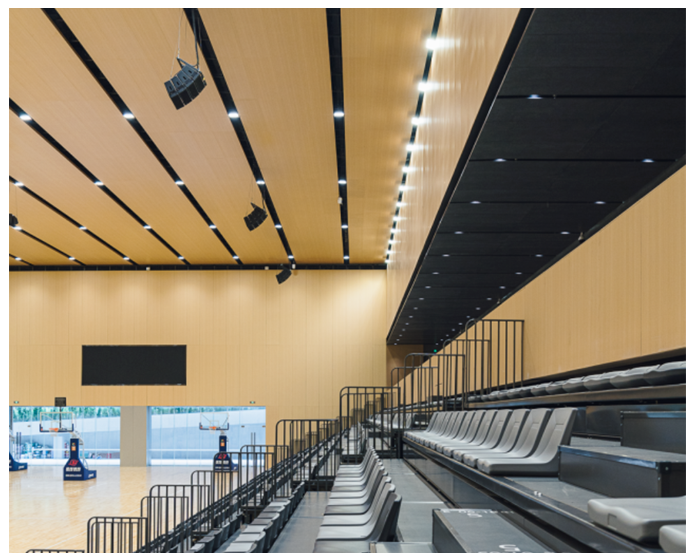 作為城市的文化名片,體育場館一如既往地將城市特色文化、實用性以及功能性完美的結合起來。場館在垂直向上進行疊加,布置了8大功能場館:游泳館、籃球場、羽毛球館、網球館、乒乓球館、擊劍館以及舞蹈室等多個專業賽事級別運動場地。不僅提供基本體育設施服務,還能滿足中小型賽事、體育運用與文化等多方面需求,同時,簡上體育綜合體在重塑城市精神和社區生活中扮演重要角色,滿足市民文化體育休閑娛樂健身等各項需求。 其中一層多功能綜合館,面積超過1200平方米,包含2000個坐席和3個籃球全場,可以承辦中小型賽事和活動。在擴聲系統的選擇上,面臨著場館層面積大,層高深,混響時間長,設備選擇需要滿足大聲壓級、高靈敏度、適合長距離投射和體積輕巧能減少高空懸掛的負荷,確保滿足極佳的指向性控制,保證音色的一致性,具備優異的安全性和穩定性。