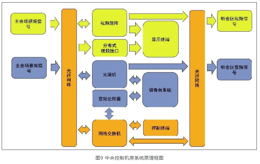 主會(huì)場(chǎng)本地的音視頻信號(hào)匯總至中央控制機(jī)房。