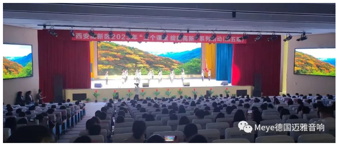 我們看到,此次西安高新區2023年“三個課堂 綻放高新”系列活動(第五期)活動中,孩子們坐在寬敞明亮的多媒體會議廳里面認真學習,聽得津津有味,還有同學們在舞臺上表演節目,作為會議廳音響設備的合作方我們倍感榮幸。據Meye音響技術團隊介紹,此次該多媒體會議廳采用了: